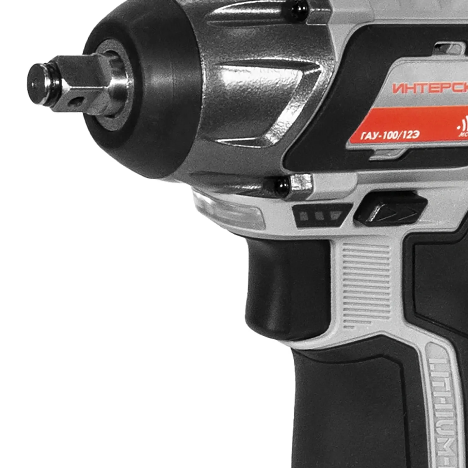 Ударный гайковерт ГАУ-100/12Э относится к классу безреактивного инструмента. Всем хорошо известен так называемый «русский ключ» - зубило и молоток – самую сильно затянутую/прикипевшую гайку можно отвернуть, уперев в нее зубило и нанося по ней удары молотком. При этом ударный импульс воздействует вдоль поверхности вращения оснастки, практически перпендикулярно диаметру. Точно так же работает ударный гайковерт, только он не портит оснастку за счет равномерного приложения силы ударов по всей поверхности шлица/головки/гайки через ударную биту/торцевую головку. Вращающий момент образуется за счет соударения на каждом обороте в ударной муфте частей редуктора, называемых молот и наковальня. За счет разницы масс самого инструмента и закручиваемой оснастки, которая обычно достигает 100 и более раз и возникает эффект, когда крупный крепеж можно завернуть или отвернуть, всего лишь слегка придерживая инструмент. Сила затяжки регулируется за счет выбора скорости вращения (и частоты ударов) и ограничения длительности воздействия (количества ударов).