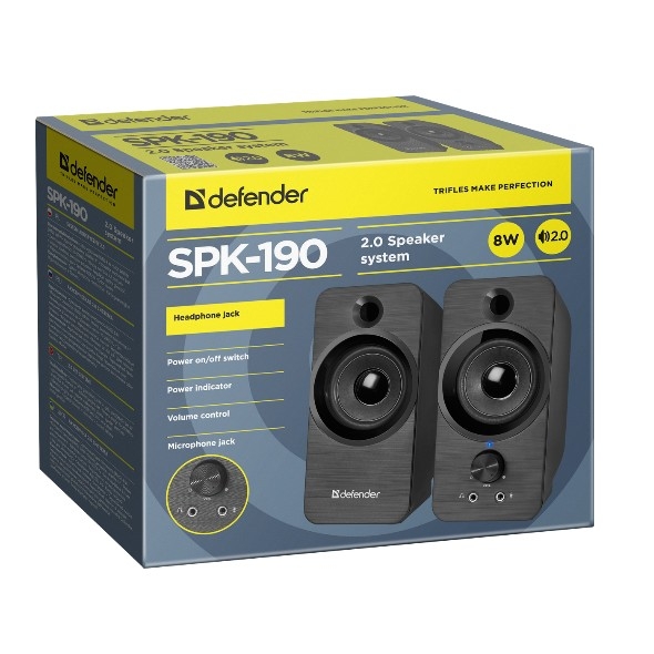Акустическая 2.0 система Defender SPK-190 черный, 8 Вт, питание от USB