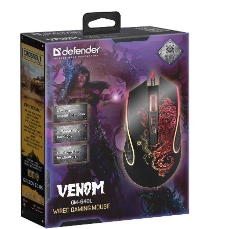Проводная игровая мышь Defender Venom с подсветкой и кодом для игры Crossout в комплекте: Программное обеспечение Defender Game Center