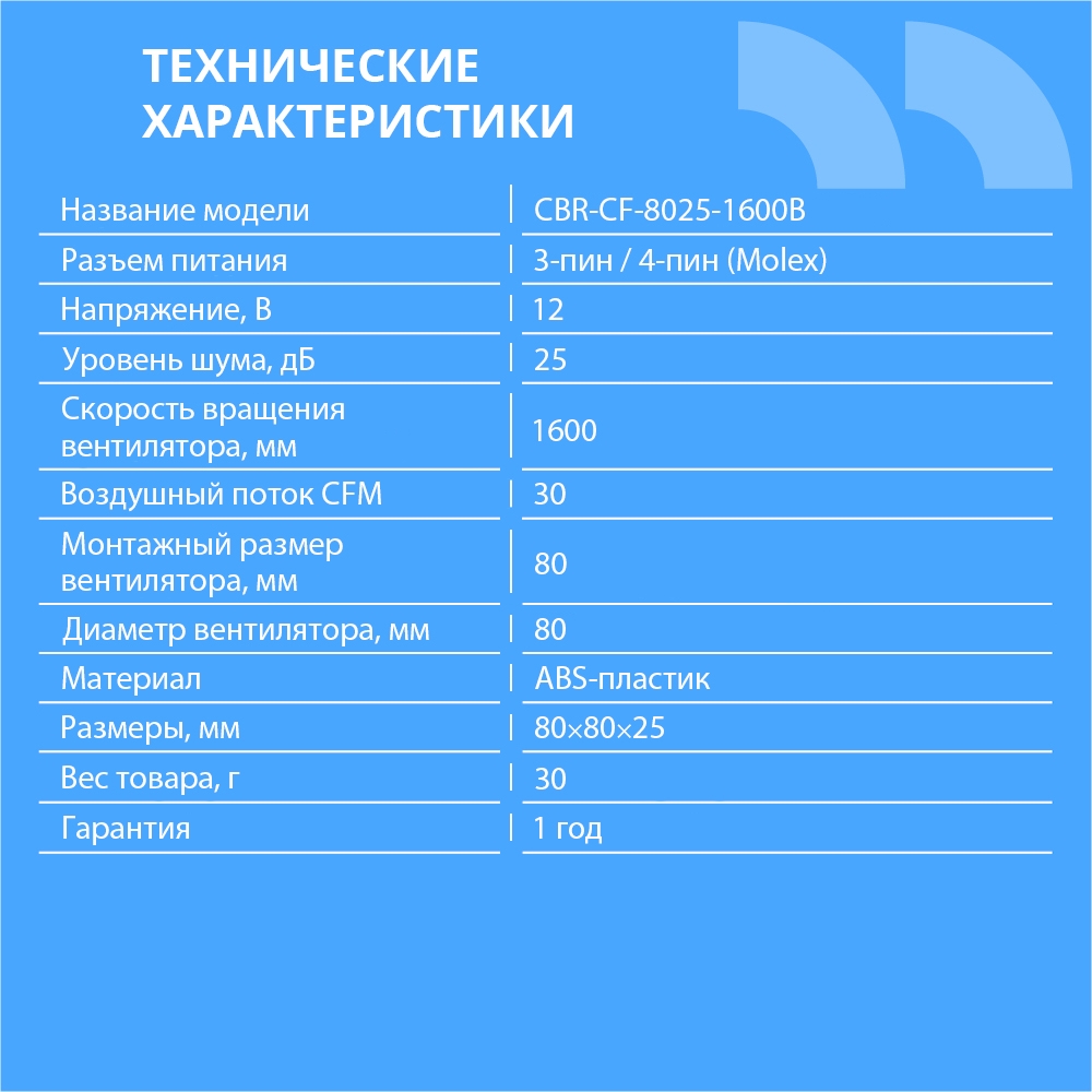 Вентилятор CBR-CF-8025-1600B от компании CBR