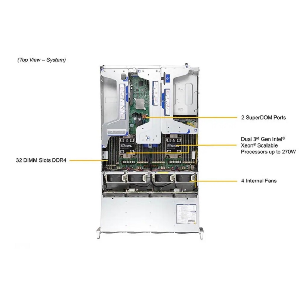 Supermicro SYS-620U-TNR (X12DPU-6,829U3TS-R1K22P-T, 2U, Dual Socket P+ (LGA-4189), Intel® C621A, 32xDIMM Slots 3200/2933/2666 ECC DDR4,12x 3.5″ hot-swap hybrid NVMe/SATA/SAS, 2xP