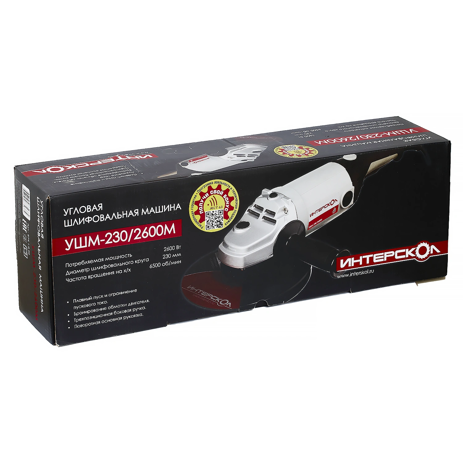 Бронированный двигатель рассчитан на продолжительный режим работы (режим S1), при номинальной нагрузке может работать, не требуя перерывов на охлаждение. Это особенно важно, когда инструмент используется в профессиональных целях, в том числе для проведения работ по шлифовке поверхностей. Есть плавный пуск для снижения нагрузок на сеть и уменьшения гироскопического момента при запуске двигателя. Доступ к щёткам упрощён – для их проверки и замены достаточно отвернуть два винта и снять две небольшие крышки на боковинах корпуса. Выключатель оборудован кнопкой блокировки от случайного запуска, шнур питания – в мягкой резиновой изоляции, не «дубеющей» на морозе.