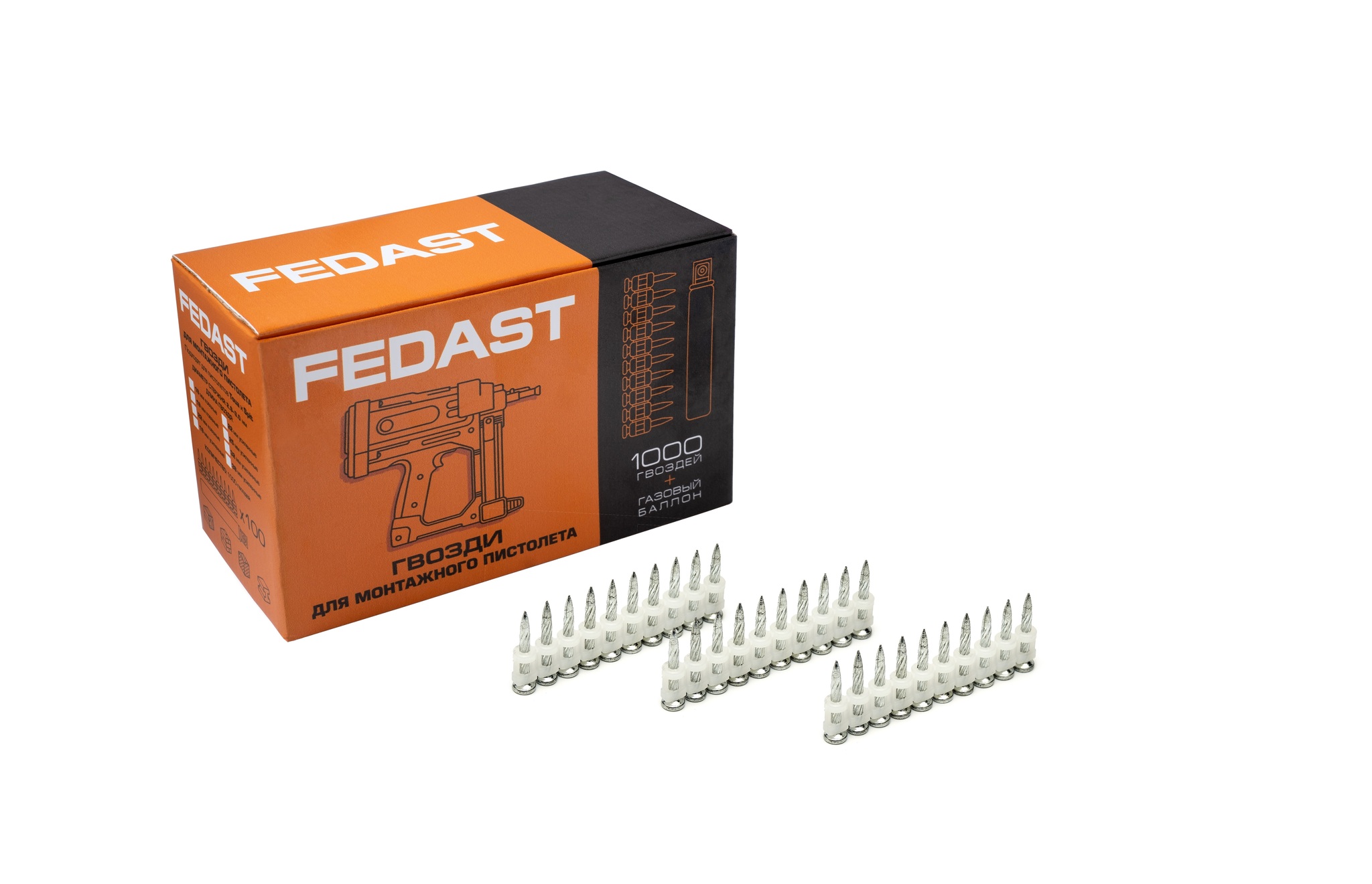 Гвозди 2.7*25 мм для металла и непрочного бетона винтовые с кованым наконечником(1000 шт/уп) FEDAST