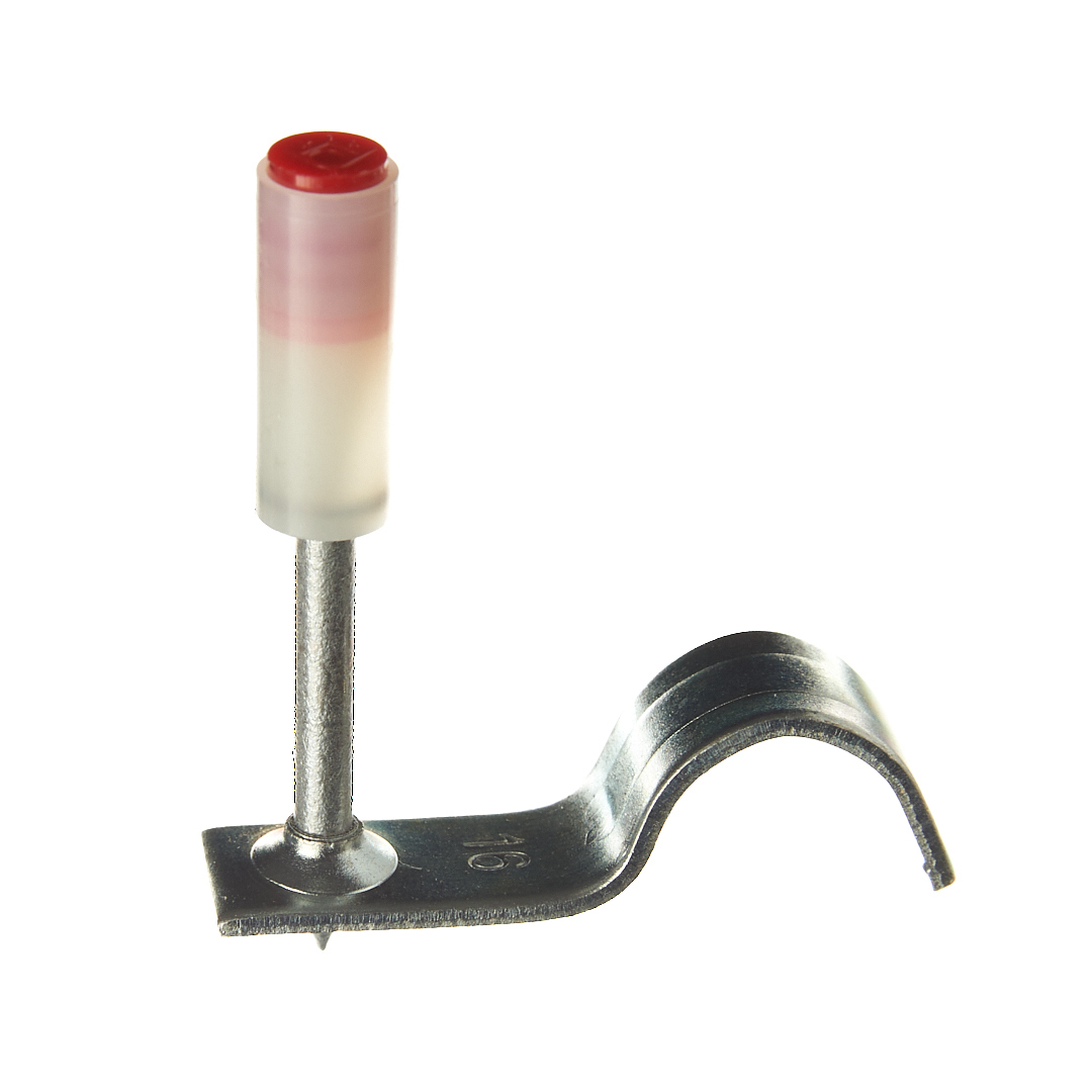 Пироксилиновые гвозди со скобой 16мм идеально подходят для крепления металлорукава, металлических и пластиковых труб, а также для монтажа кабеля и провода к бетону, стали и кирпичу, и применяются для: