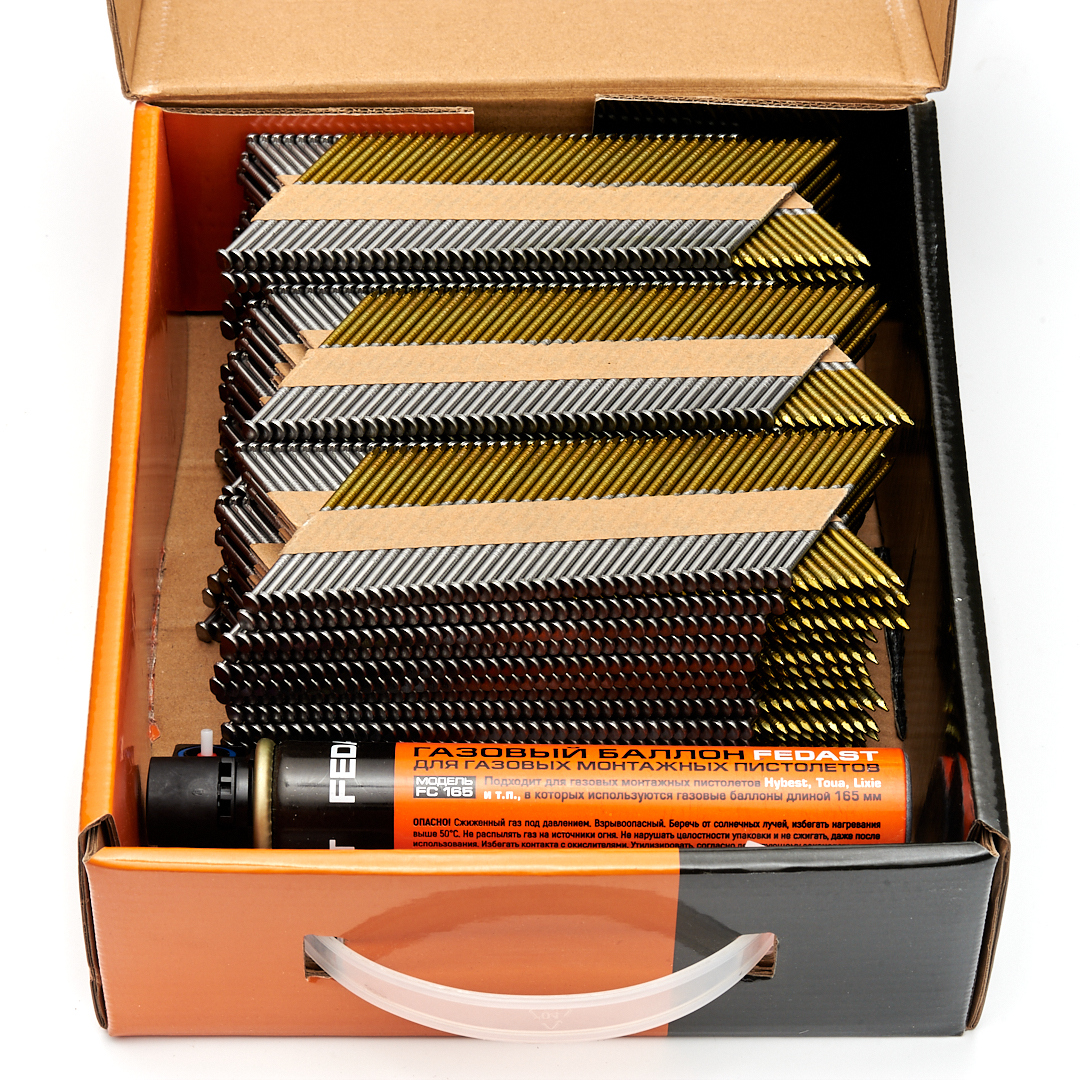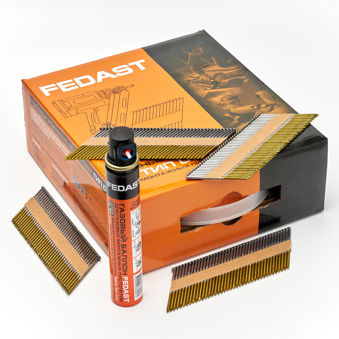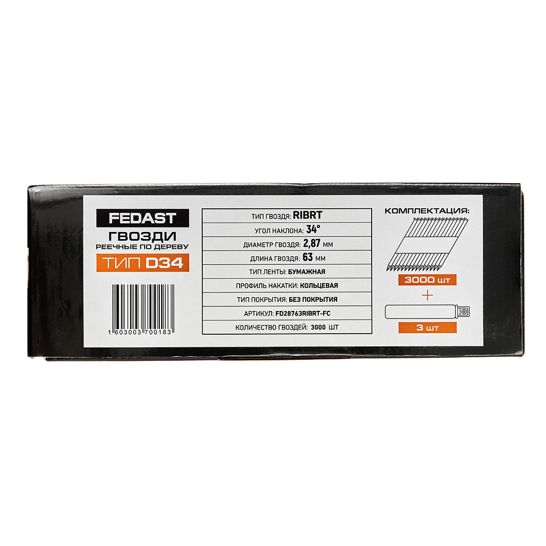 Реечные гвозди по дереву тип D34 (2,87х63, RIBrt кольц.накат., 3000 шт/уп+3 баллона) FEDAST